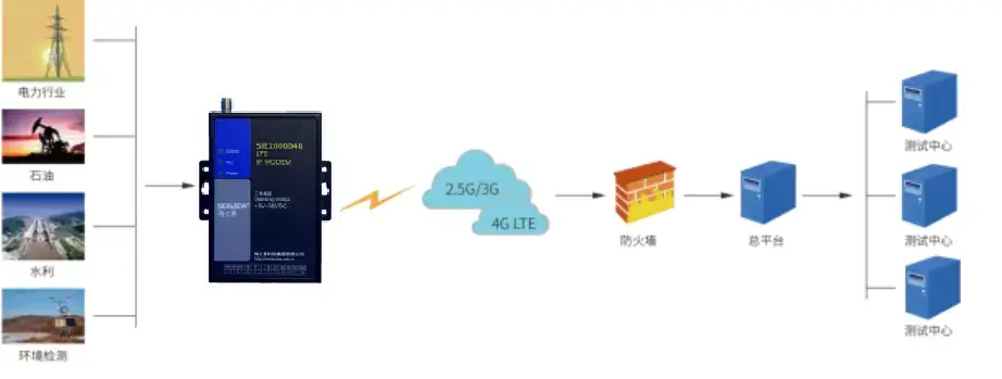 The SIE2000D4B supports multiple industrial protocols, aggregating sensor data through various ports and transmitting via wireless networks to provide secure, stable, and cost-effective industrial data transmission.